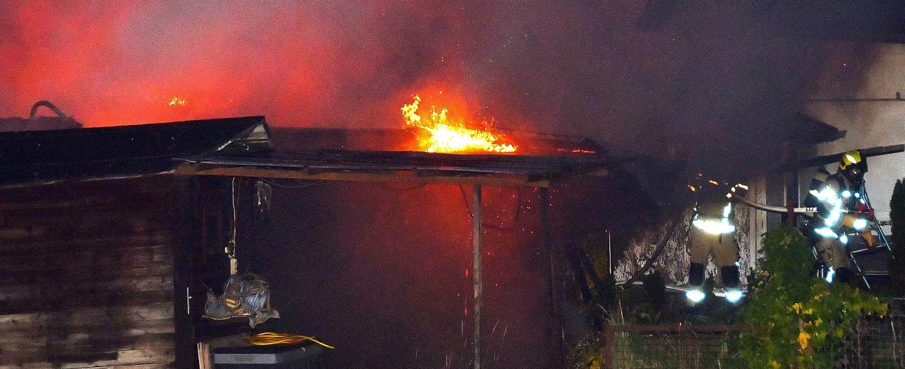 Völlig niedergebrannte Gartenlaube der Sparte Einigkeit
